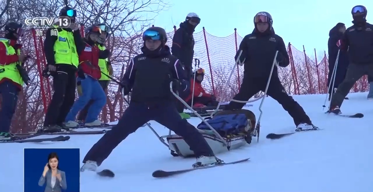 北京大学第三医院医生 白鹏:我们的巡救员要现场对他进行止血以及患肢的固定和包扎,因为这种损伤是在雪场最常见的,巡救员必须有高超的滑雪技能,能应付所有雪道和雪况,具备一定的院前急救的能力。