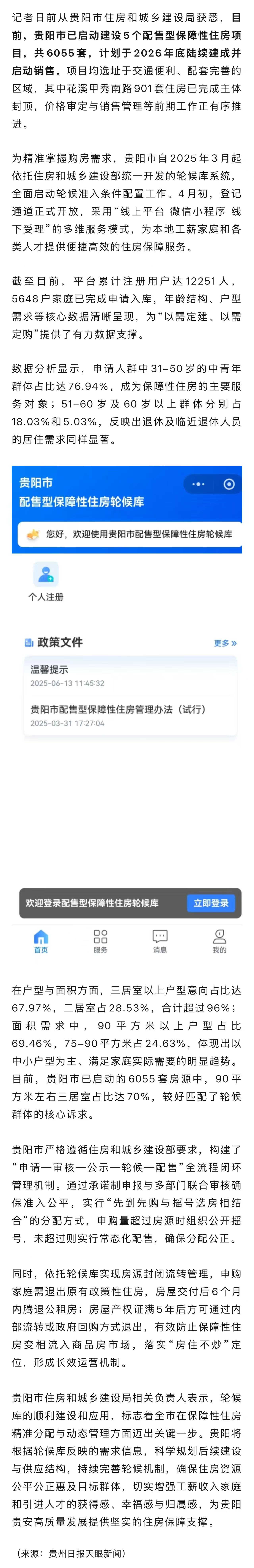 6055套!贵阳市已启动建设5个配售型保障性住房项目