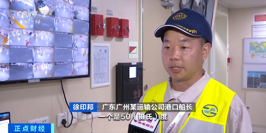 广东广州某运输公司港口船长 徐印邦:目前设定了两个限定值,当货仓温度达到50℃的时候会有一个预警,当达到60℃时,我们就要采取一定的措施来降温。