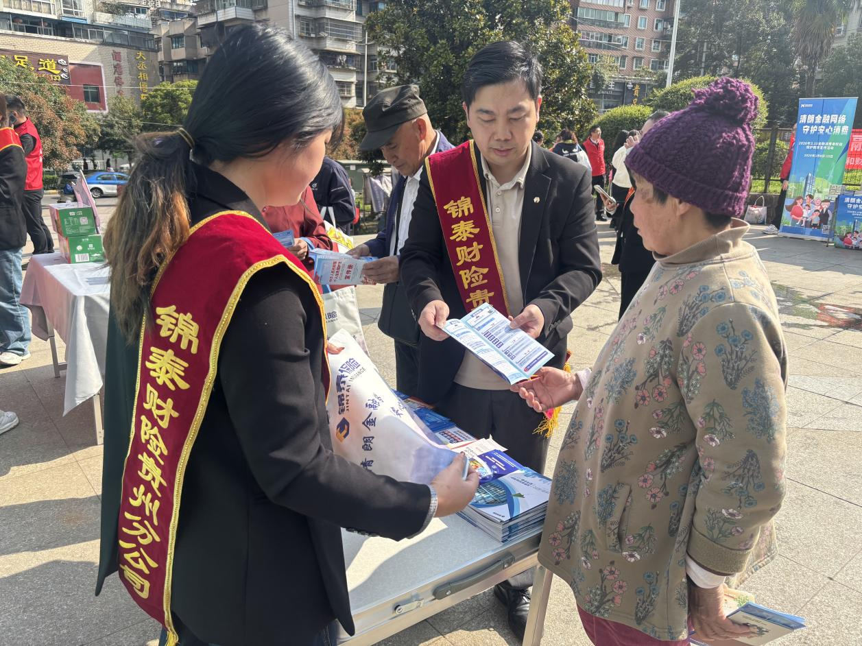 为切实提升老年群体的风险防范能力,3月13日,锦泰财险贵州分公司与省内多家保险机构,在贵阳市南明区浦江广场共同开展了以“清朗金融网 守护安心消费”为主题的金融知识集中宣传活动。