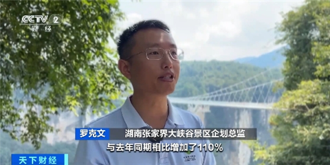 湖南张家界大峡谷景区企划总监 罗克文:“飞拉达”攀岩与去年同期相比增加110%。
