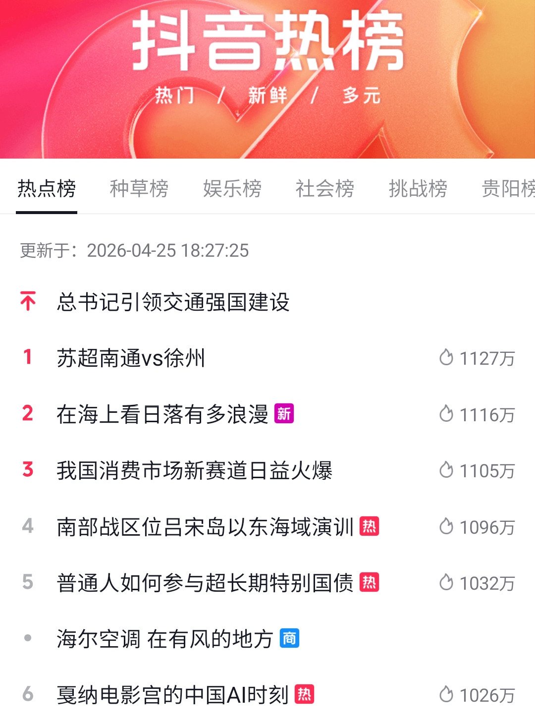 打开动静新闻客户端,刷动静听新闻。社交媒体热点打捞,洞悉社会情绪,最后来看各大热榜,明天见!