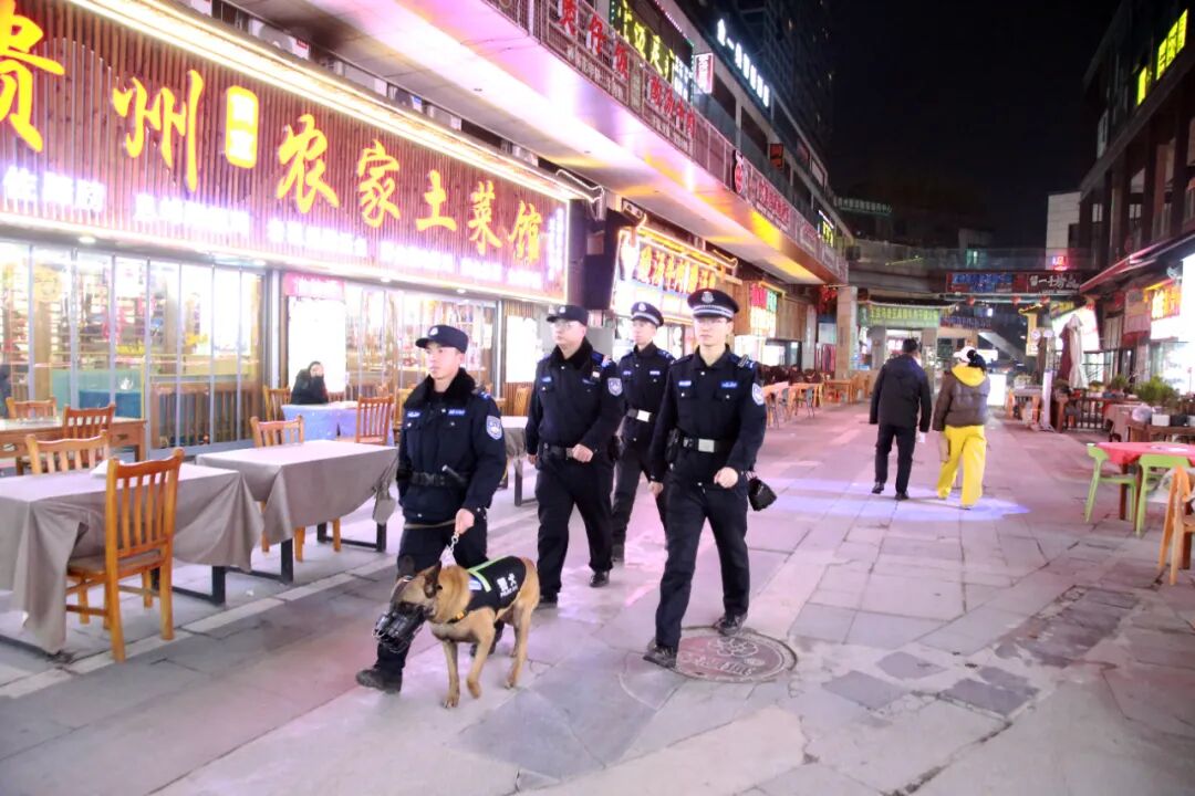 “空地协同”拓展防控维度。无人机对大型活动现场、人员密集区域及周边开展空中巡查,实时采集传输画面至指挥中心,与地面巡逻警力形成“空中预警、地面处置”的联防闭环;警犬中队携专业犬只联合排查,进一步提升隐患发现能力,实现“空地天”立体巡防无盲区。
