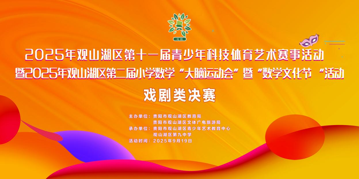2025年观山湖区第十一届青少年科技体育艺术赛事活动暨2025年观山湖区第二届小学数学“大脑运动会”暨“数学文化节”活动戏剧类决赛于 9 月 19 日在观山湖区第九中学正式举行。作为全区青少年科技体育艺术领域的重要赛事,本次比赛汇聚全区优秀青少年戏剧类人才,将为观众呈现一场兼具思想性与艺术性的文化盛宴。