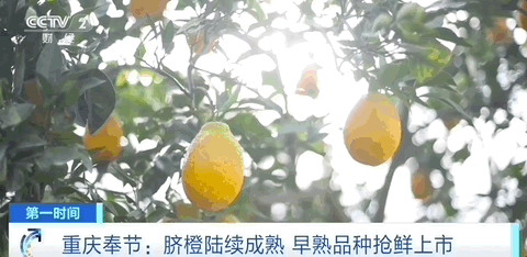在奉节县朱衣镇,脐橙树上挂满金黄色的果实。果农们娴熟地采摘新鲜的早熟脐橙,装筐、搬运、打包,果园里满是热闹的丰收景象。