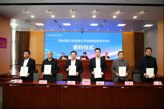 会议举行了庄重的现场签约仪式,工行贵州省分行、建行贵州省分行、贵州银行、省联社、贵阳银行、中信银行贵阳分行六家理事单位作为代表,现场共同签订了《贵州银行业促进公平有序竞争承诺书》,彰显了贵州银行业机构践行自律要求、维护市场秩序的坚定决心。