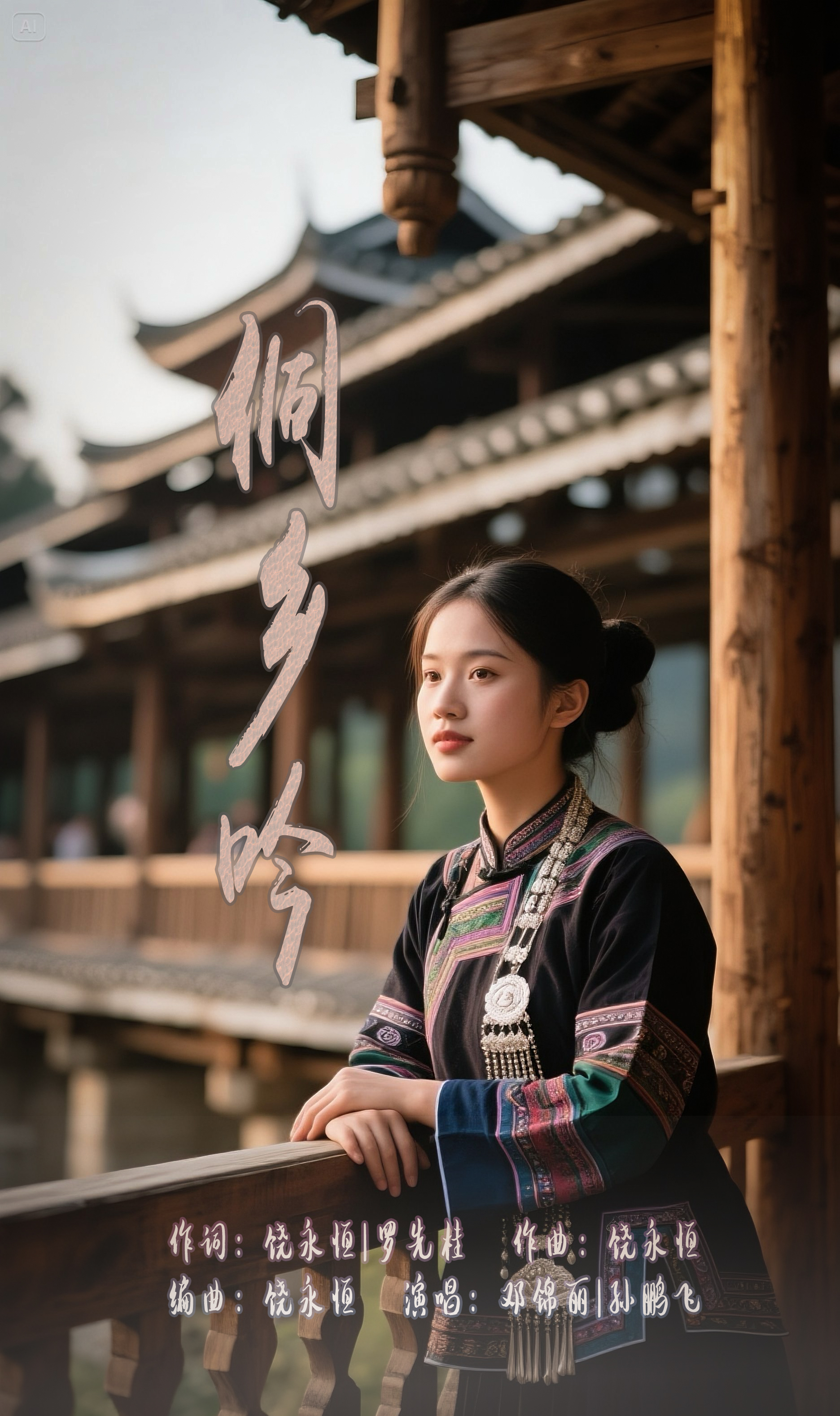 歌词如诗如画,描绘了侗乡的自然风光与人文风情——“山涧清流 羁鸟林归”“琵琶声响 伴掩牛腿”,勾勒出一幅宁静悠远的侗寨画卷;而“侗家儿女 成双配对”“情定花桥永世无悔”则唱出了侗族人民淳朴真挚的情感。副歌部分“蝉声荡 歌声回”“香醇米酒诱人醉”更以欢快的节奏和生动的意象,让人仿佛置身于侗乡的歌舞盛宴之中。