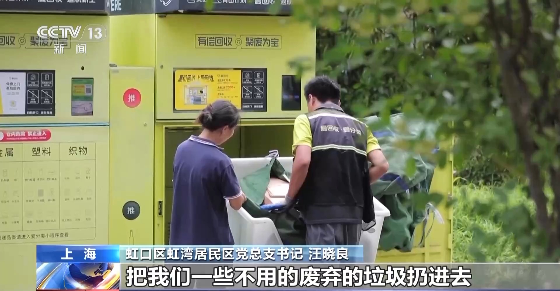 虹口区虹湾居民区党总支书记 汪晓良:这个再生座椅放在这里,能够很直观地给居民传递再生利用、变废为宝、绿色环保的理念。把一些不用的废弃的垃圾扔进去,再交给企业,用科技手段提供更多绿色环保的设施设备。