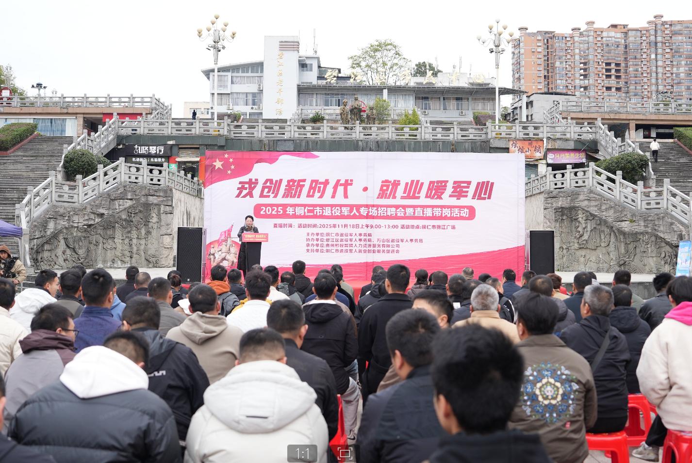 11月18日,铜仁市举办“戎创新时代·就业暖军心”冬季专场招聘会暨直播带岗活动,以精准多元服务为退役军人搭建高质量就业桥梁。