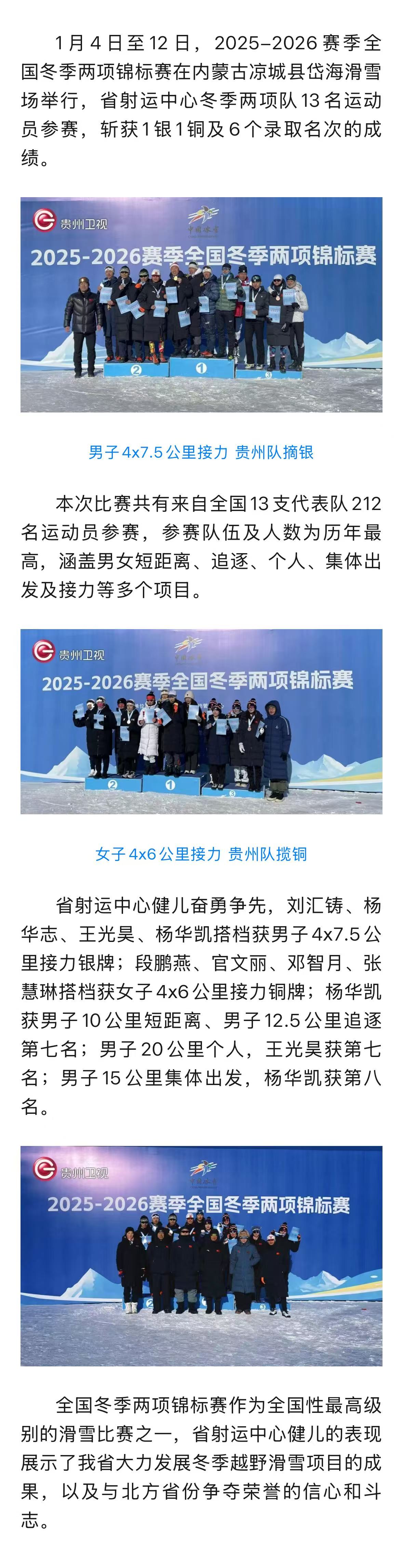 全国冬季两项锦标赛 贵州健儿获1银1铜