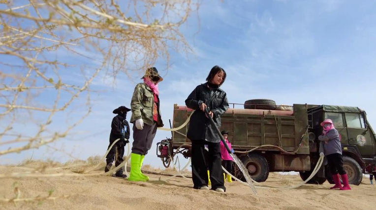 春风起,绿意生,2026年“请到民勤种棵树”志愿活动正在火热进行,来自各地的志愿者奔赴甘肃省武威市民勤县这片热土,用双手为沙漠增添新的生机。在腾格里沙漠边缘的公益林基地,志愿者们挖坑、栽苗、培土、浇水,其中,一位中文名叫真理的法国女孩格外引人注目。