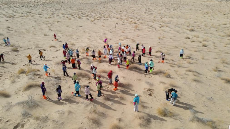 截至目前,2026年“请到民勤种棵树”活动已吸引万余名中外志愿者踊跃参与,预计今年将栽植梭梭、花棒、柠条等沙生苗木超过100万株。民勤地处巴丹吉林与腾格里两大沙漠夹缝之间,是西北生态安全的重要屏障。越来越多的中外志愿者在此携手植绿,正为筑牢这道绿色屏障注入源源不断的动力。
