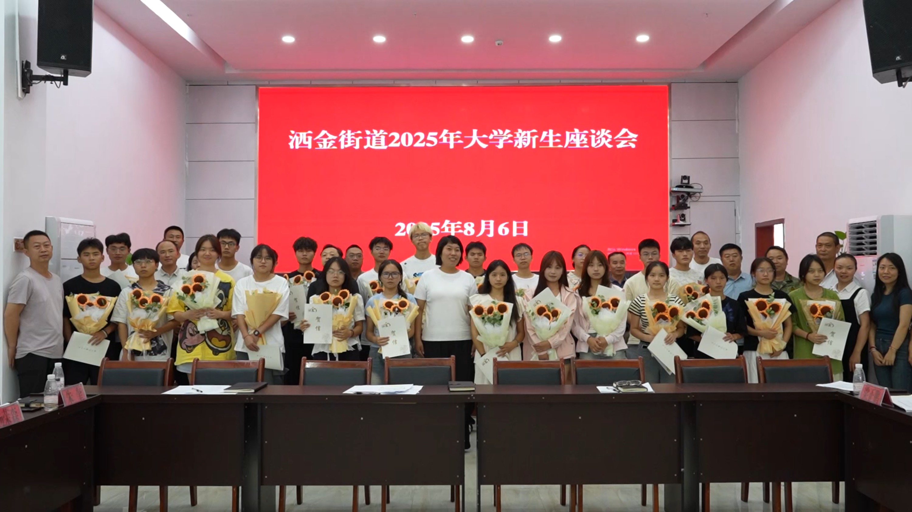 8月6日,洒金街道南兴社区热闹非凡,舞龙舞狮队伍敲锣打鼓,自发组织来到社区今年考取北京大学和清华大学的两位学子家中祝贺。同时,街道和社区为两位学子佩戴绶带、献上鲜花,并发放鼓励金,勉励学子在大学期间勤奋学习、砥砺前行,学有所成回报社会和家乡。