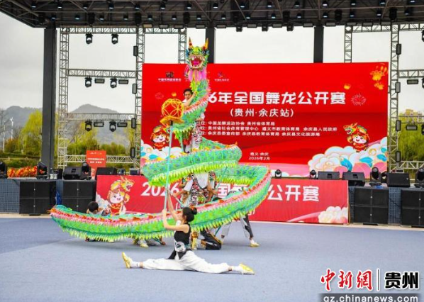 2月28日,全国舞龙公开赛在余庆县贵州斗舞会场举行,来自上海、湖南、四川、贵州等地的10支专业队伍同台竞技。
