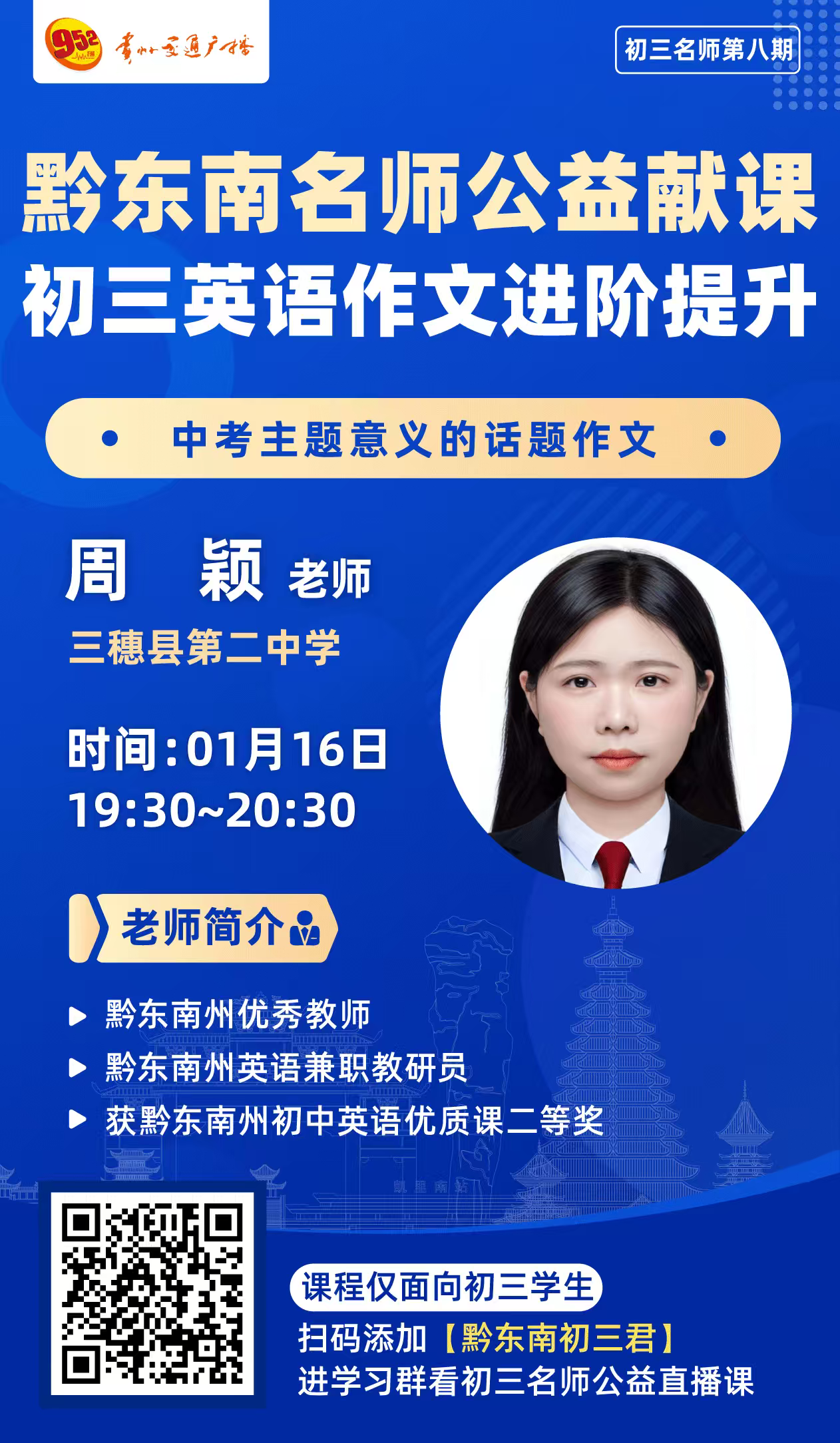 语文英语期末冲刺丨黔东南名师公益直播课(初三名师第八期)