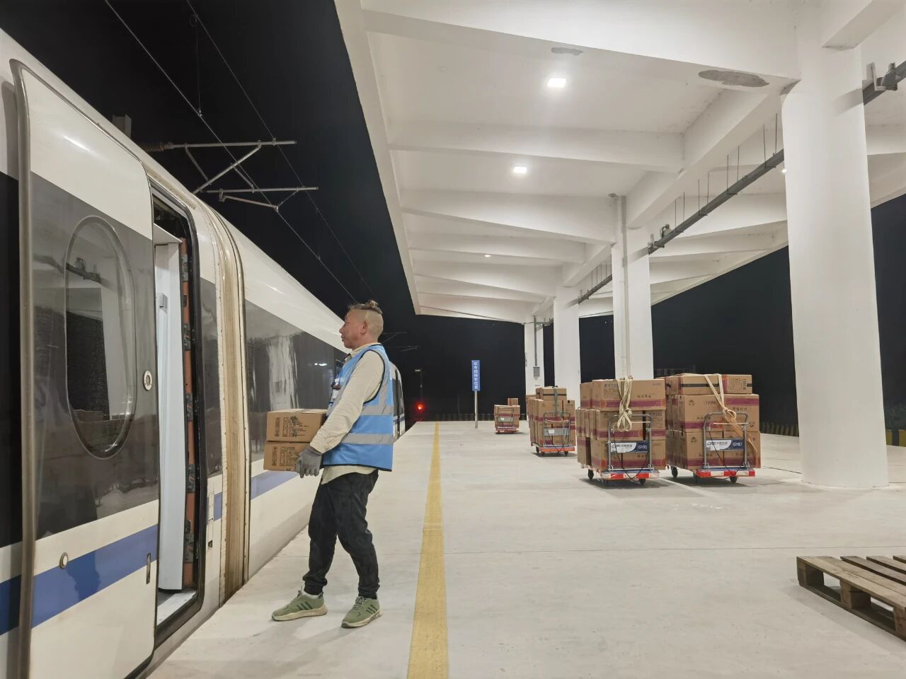 除了这趟新恢复开行的列车,另一趟自双流西站始发、终至昆明洛羊镇站的高铁快运列车同样忙碌。自11月1日“双11”网购高峰期快运服务启动以来,列车每天都呈满载状态,最高发货量近60吨、最高到达量近50吨,较去年最高到发量同比均有所增长。