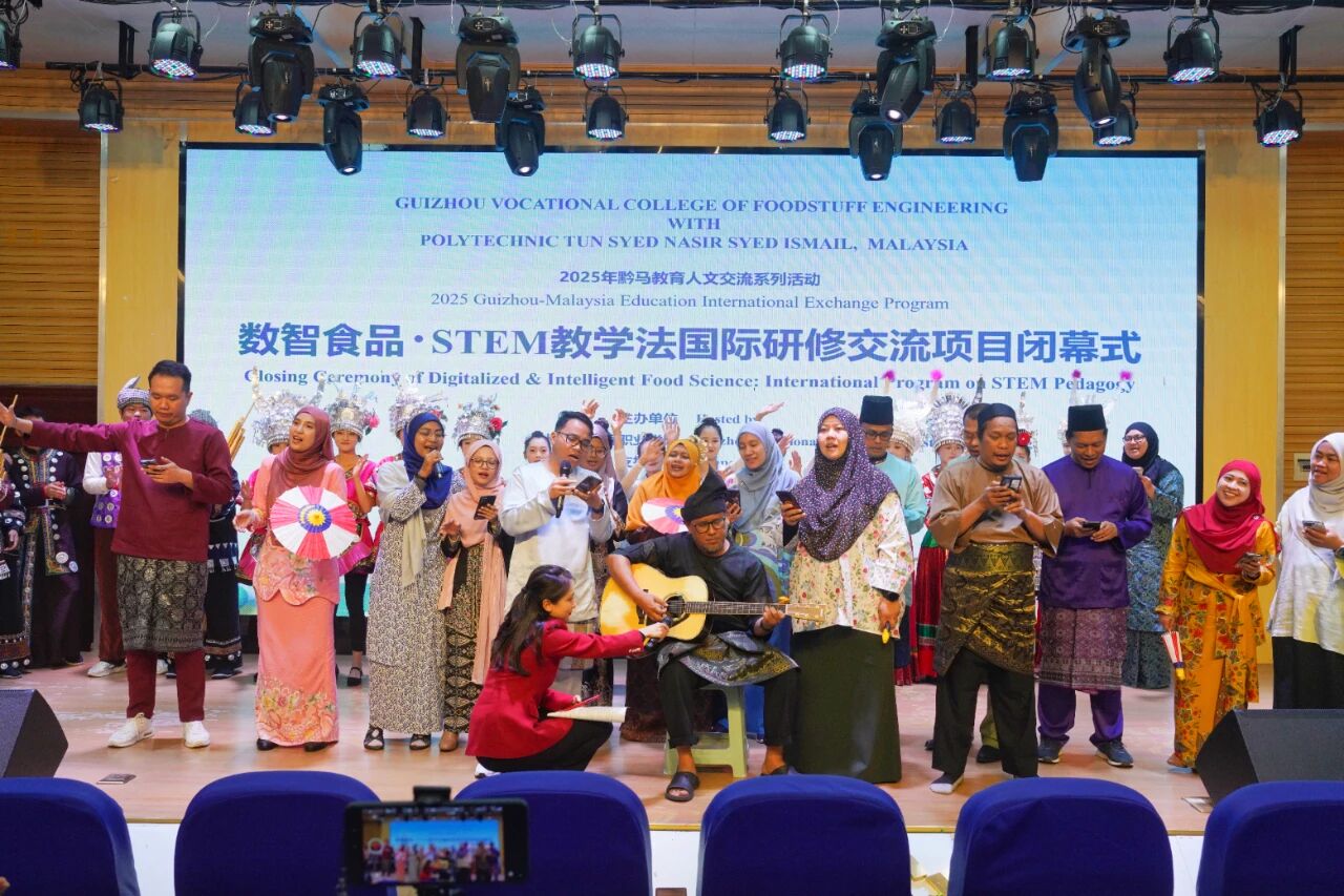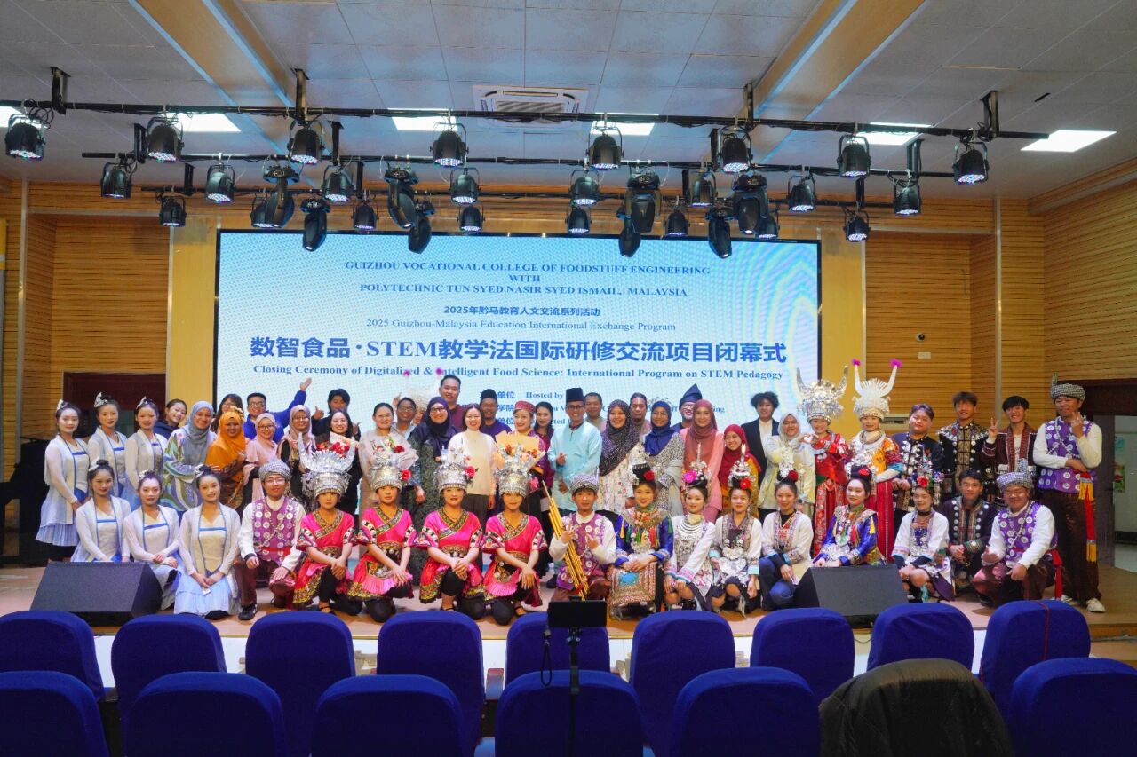本次研修项目由贵州省教育国际交流协会悉心指导、贵州食品工程职业学院精心主办,来自马来西亚敦赛纳西尔赛伊斯迈理工学院(PTSN)的近20名教师与学院师生共同参与,以数智赋能教学、文化联结友谊为导向,搭建起PTSN与贵州食品工程职业学院专业交流与文化互鉴的平台。