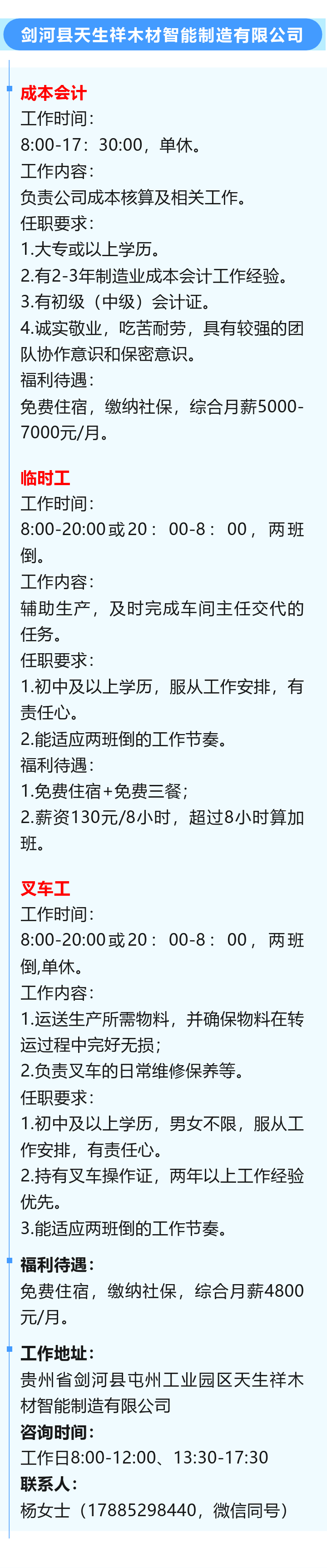 招聘成本会计、临时工、叉车工!月薪可达7000元!免费住宿!