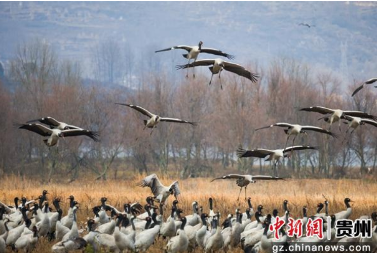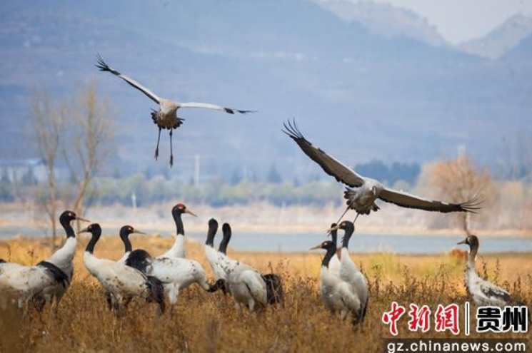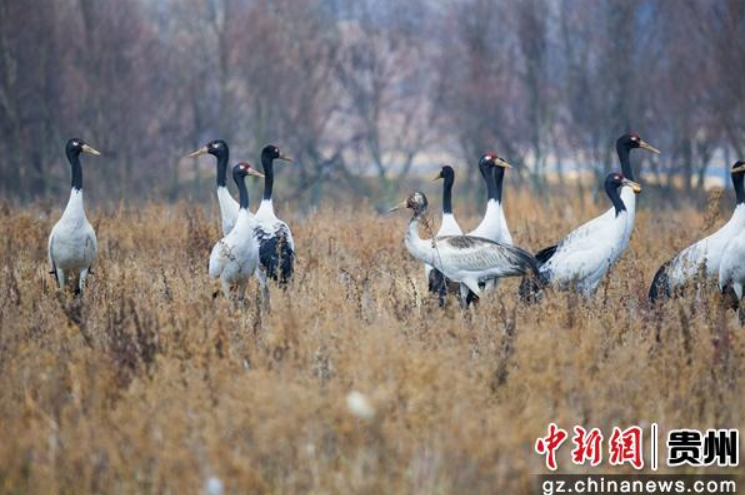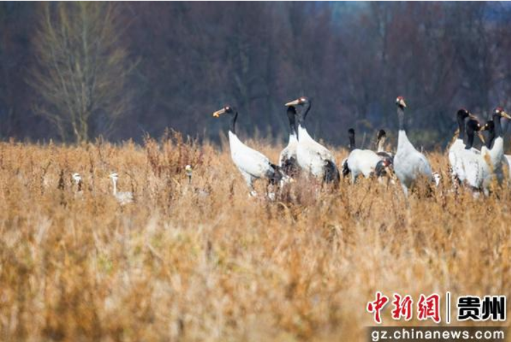 贵州威宁:黑颈鹤惬意越冬