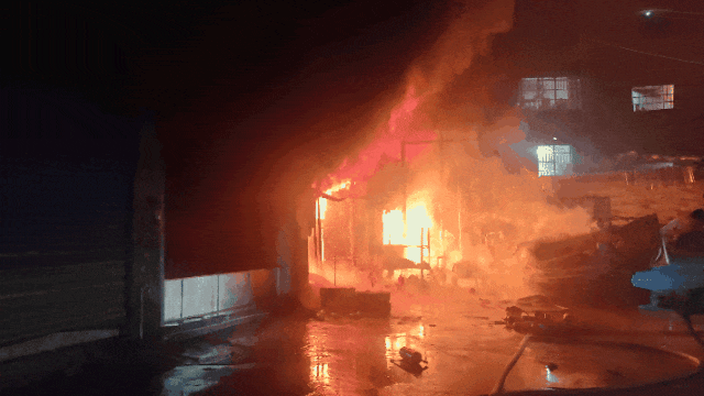 消防员抵达现场时,明火已引燃该自建房4间门面及二楼库房,且有向周边扩散趋势,随即开展灭火作业,火灾被成功扑灭。