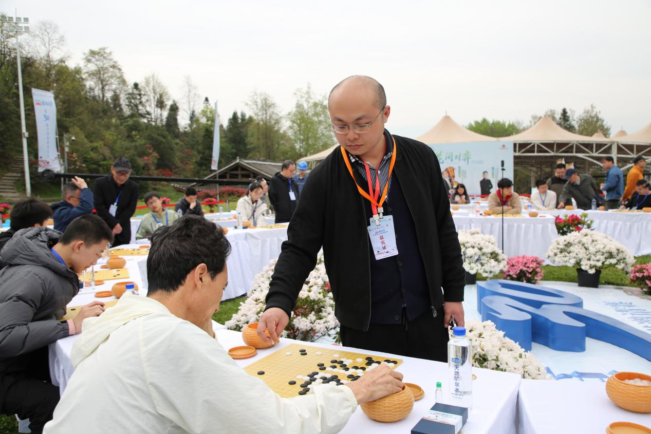 开幕式前,领导嘉宾一行参观了“花弈三十载・光影映杜鹃”主题图片展,开幕式后,百人围棋“花间对弈”活动随即展开,本次活动特别邀请 10 位围棋界名家高手组成嘉宾棋手团,采用 1 位嘉宾对阵 10 位围棋爱好者的车轮指导棋模式,以棋会友,传艺解惑,在漫山花海之间,演绎围棋文化的独特魅力。