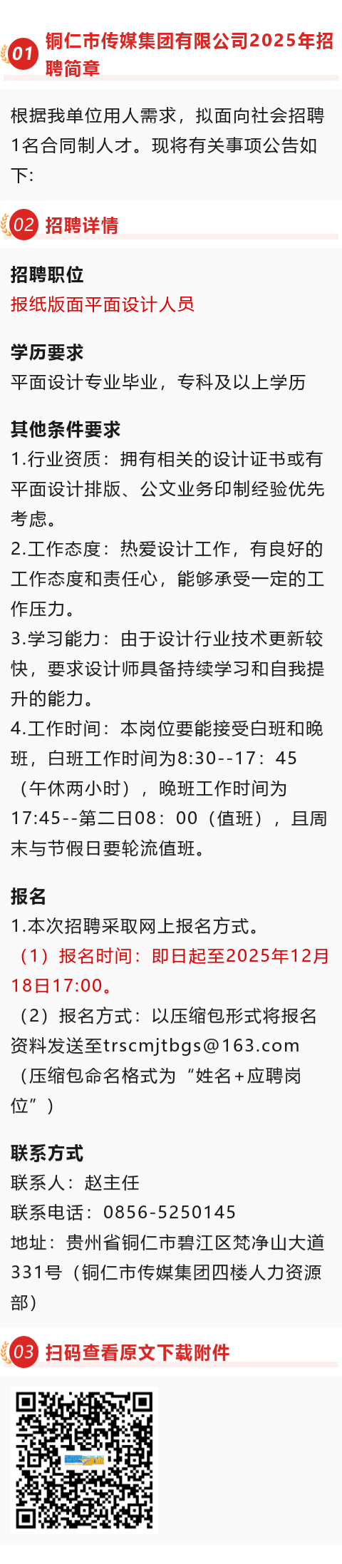 【国企】铜仁市传媒集团有限公司招聘!大专起报!