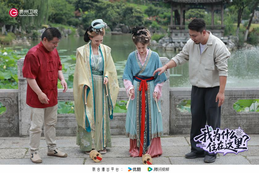 姐妹俩换上古风装扮,感受服饰中的东方美学。中式园林内,非遗抖空竹令人叫绝,南京白局韵味悠长。