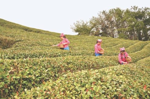 近日,江苏省南京市高淳区固城街道花山村800亩茶园春意盎然,采茶工正在采摘首批春茶新芽抢“鲜”上市。近年来,当地依托连片茶山,以茶为媒推进农旅融合发展,助力乡村全面振兴。孔令谦 曹海萍 摄