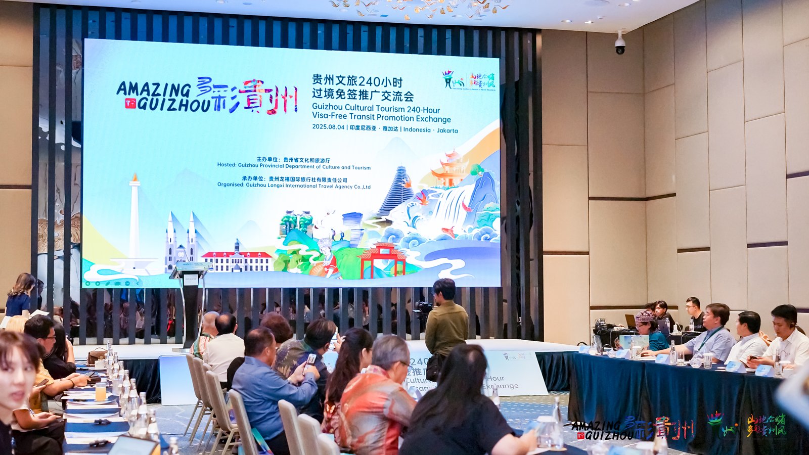 2025年8月4日下午,贵州文旅240小时过境免签推广交流会在印度尼西亚雅加达举办。交流会上,贵州省文化和旅游厅宣传推广与交流合作处处长汪琳女士,重点解读了240 小时过境免签政策的适用范围、联程旅游产品、介绍了贵州的自然景观、桥梁奇观、民族文化、避暑胜地、户外运动等旅游资源,并表示“此次交流旨在让更多印度尼西亚旅游业界了解贵州,240小时过境免签政策有利于促进更多印度尼西亚游客前往贵州旅游。随着境外来黔支付的便利化和航线的加密,贵州和印度尼西亚两地的旅游合作将更加紧密。”