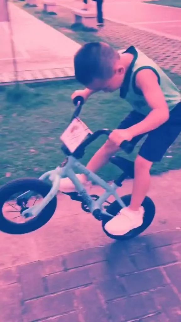 ↑父亲用手机记录下刘浩冉小时候练习小轮车的画面