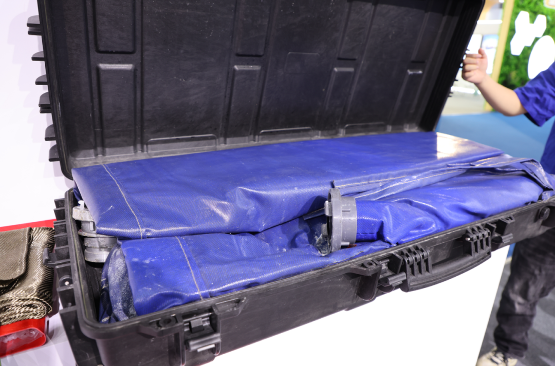 该装备针对新能源汽车火灾设计,采用高性能玄武岩纤维硅胶涂层布结合水幕带,能够迅速覆盖着火车辆,实现隔氧灭火和持续降温双重作用,有效应对锂电池火灾复燃、爆炸等复杂险情。实战测试表明,该避火罩可在104秒内将覆盖火灾温度从800℃降至150℃,显著提升灭火效率,保障救援人员安全。