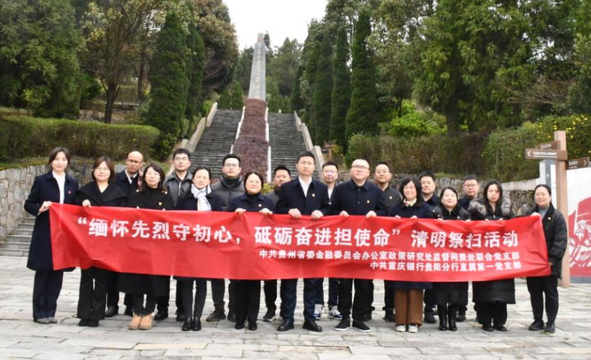 近日,重庆银行贵阳分行直属第一党支部与贵州省委金融办政策研究处监督问责处联合党支部,在贵阳市乌当区百宜红军烈士陵园联合开展“缅怀先烈守初心,砥砺奋进担使命”为主题的清明祭扫活动。