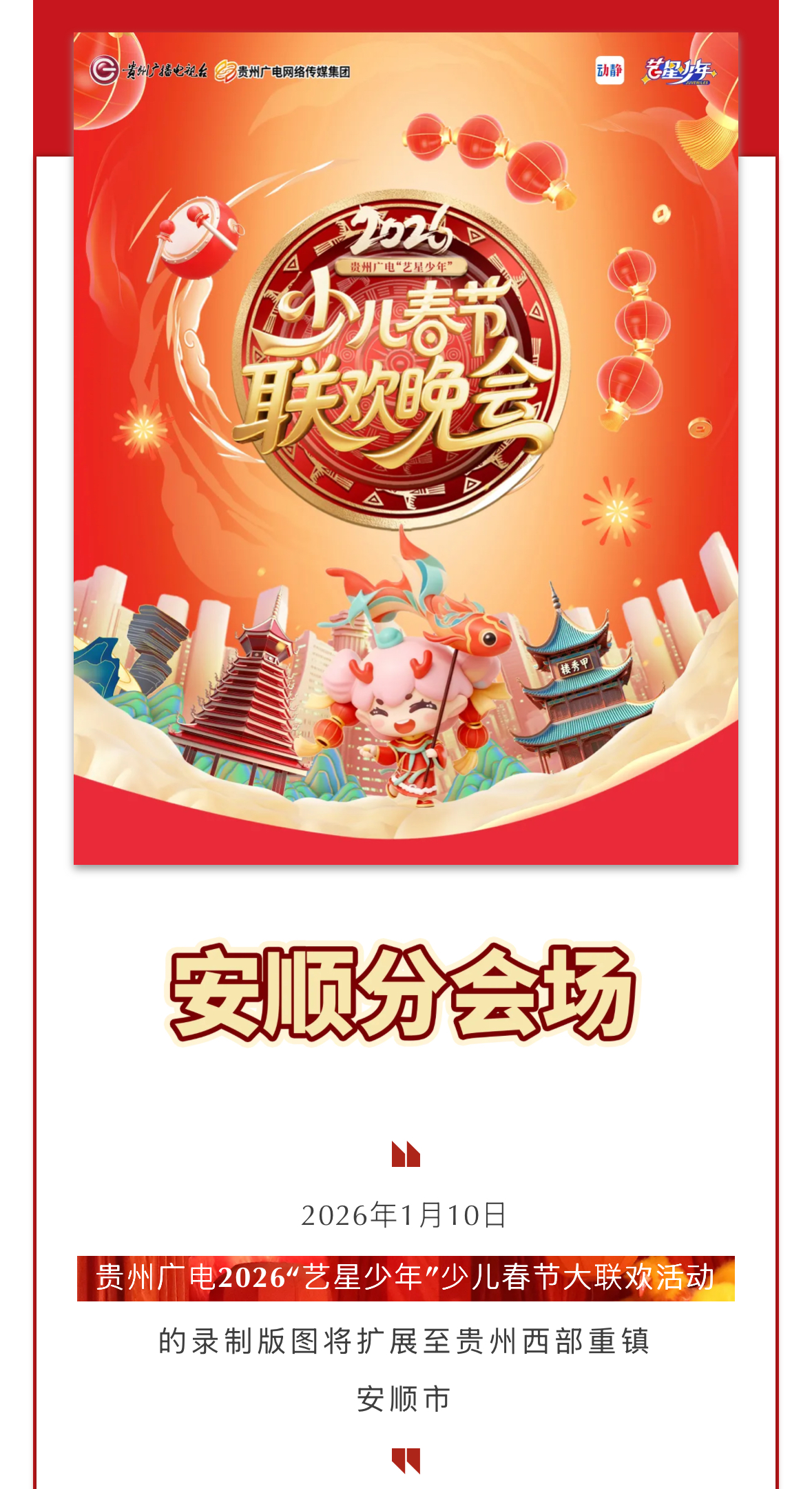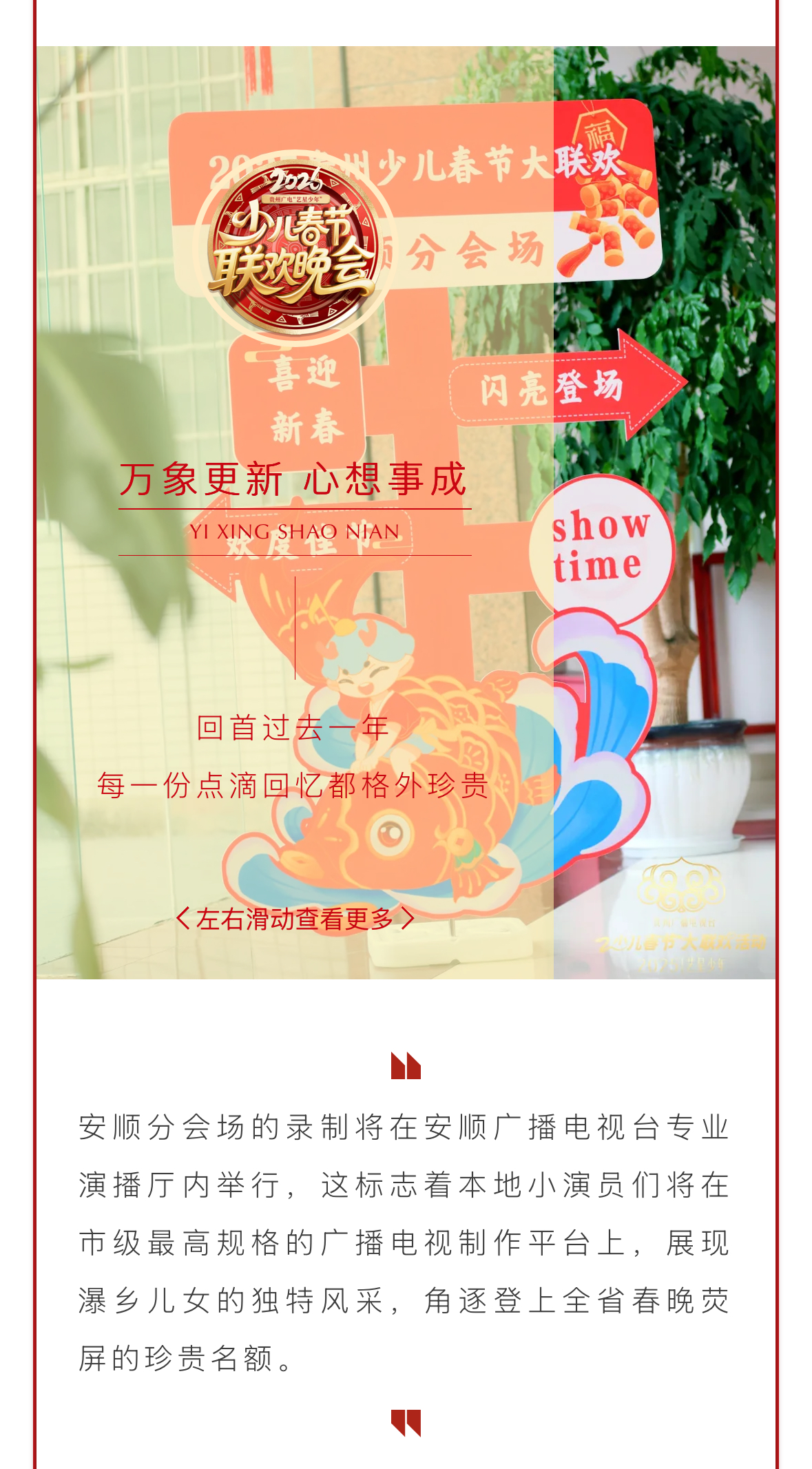 瀑乡星跃,艺启新程!2026少儿春晚安顺分会场1.10录制在即!