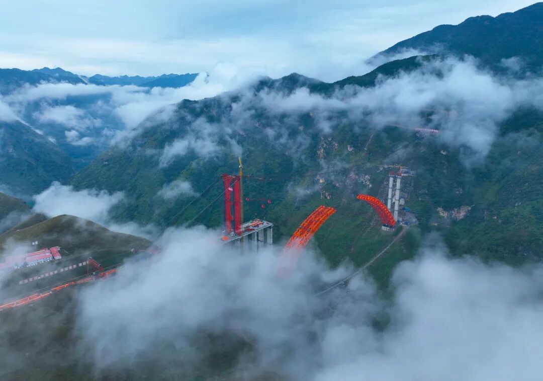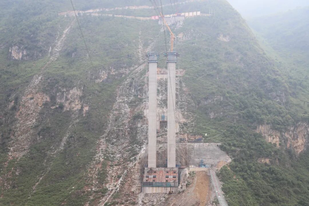 此后,这项技术投入大规模应用,截至目前,盘州岸拱座已累计浇筑混凝土20000方,单次连续泵送量达5000方。这项从构想变为现实的“空中泵送”技术,已迅速在安盘高速徐家湾大桥得到应用,标志着这项攻克极端地形的 “贵州交投方案” 已然成型,并为未来同类复杂环境下的超级工程建设提供了可靠范本。