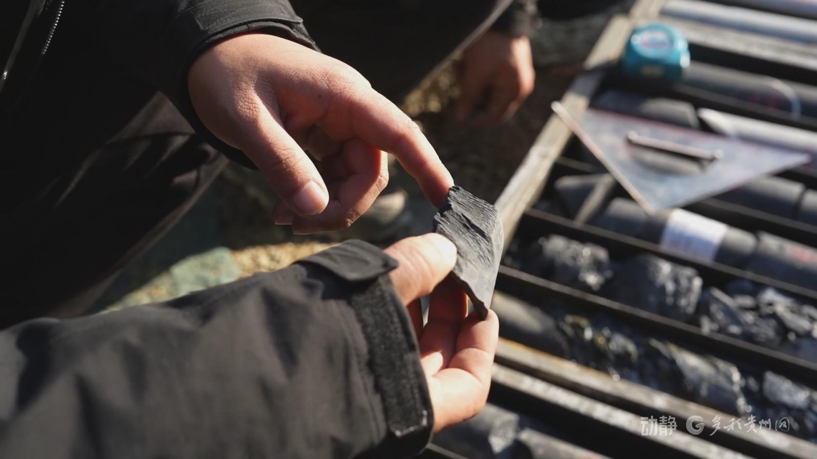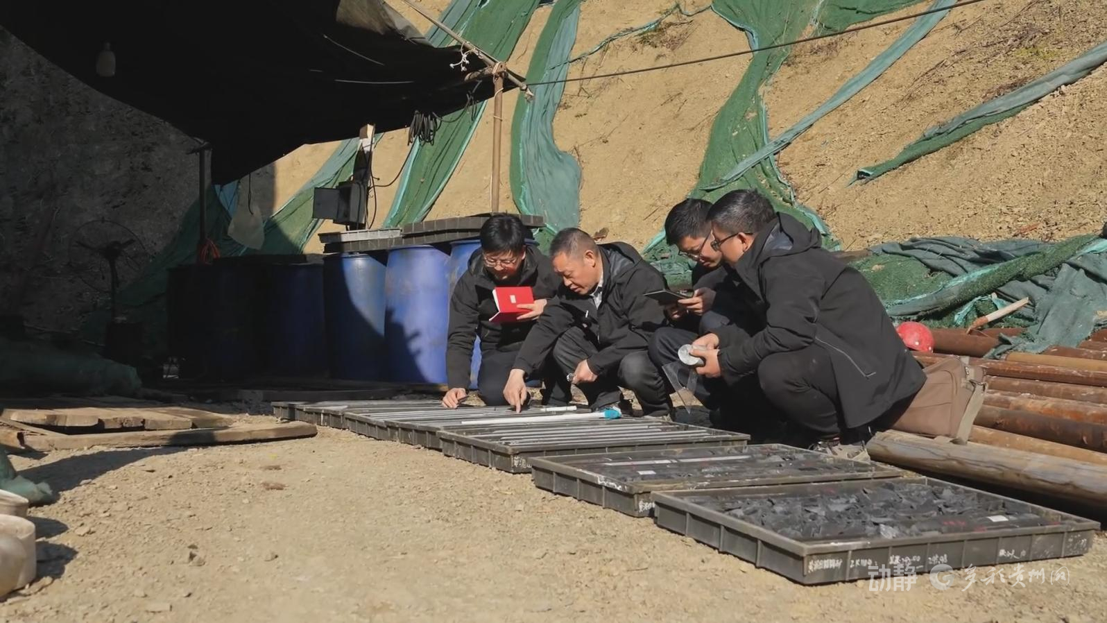 在铜仁市松桃耿溪锰矿区,蒋天锐正在和同事对刚刚取芯获得的数据进行核对。