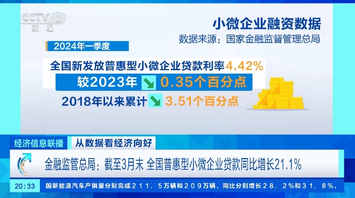 数据显示,今年一季度,全国新发放普惠型小微企业贷款利率4.42%,较2023年下降0.35个百分点,2018年以来累计下降3.51个百分点。下一步,金融监管总局要求银行在保量、稳价、优结构等方面助力中小微企业融资。