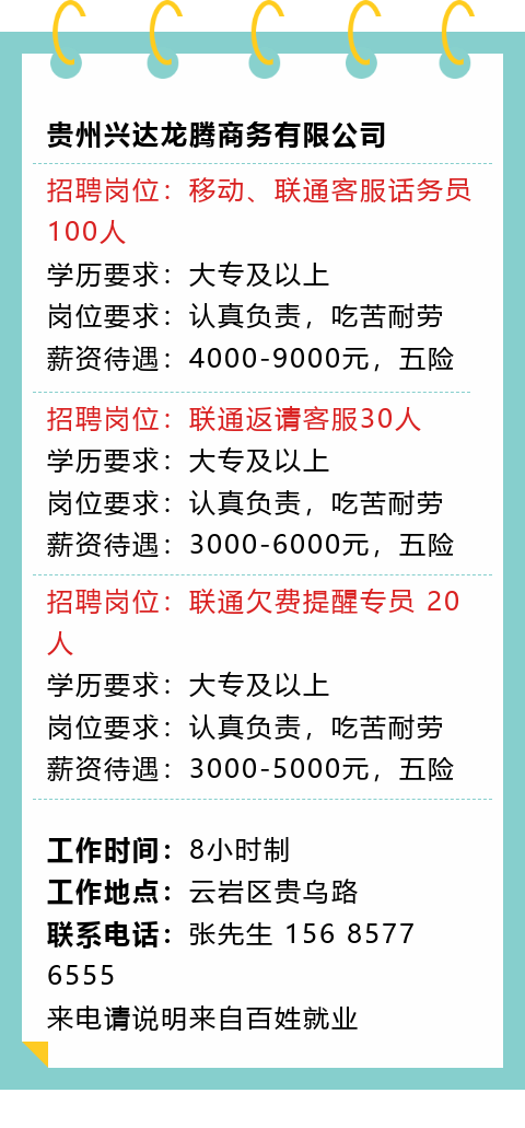 贵阳市云岩区招聘150人!月薪3000-9000元!大专起报!
