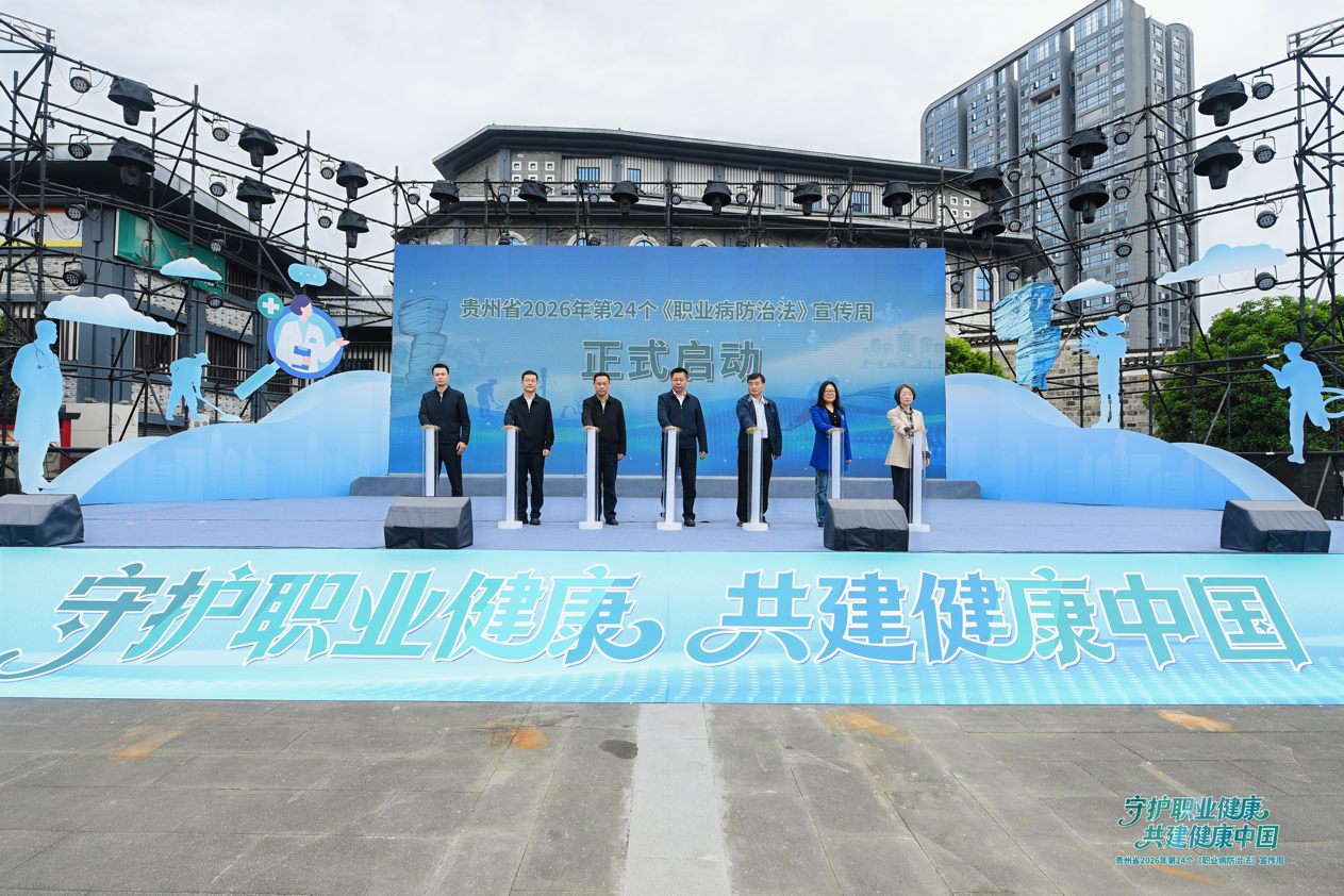 在倒计时声中,与会领导共同按下启动装置,标志着贵州省2026年第24个《职业病防治法》宣传周系列活动正式拉开帷幕。