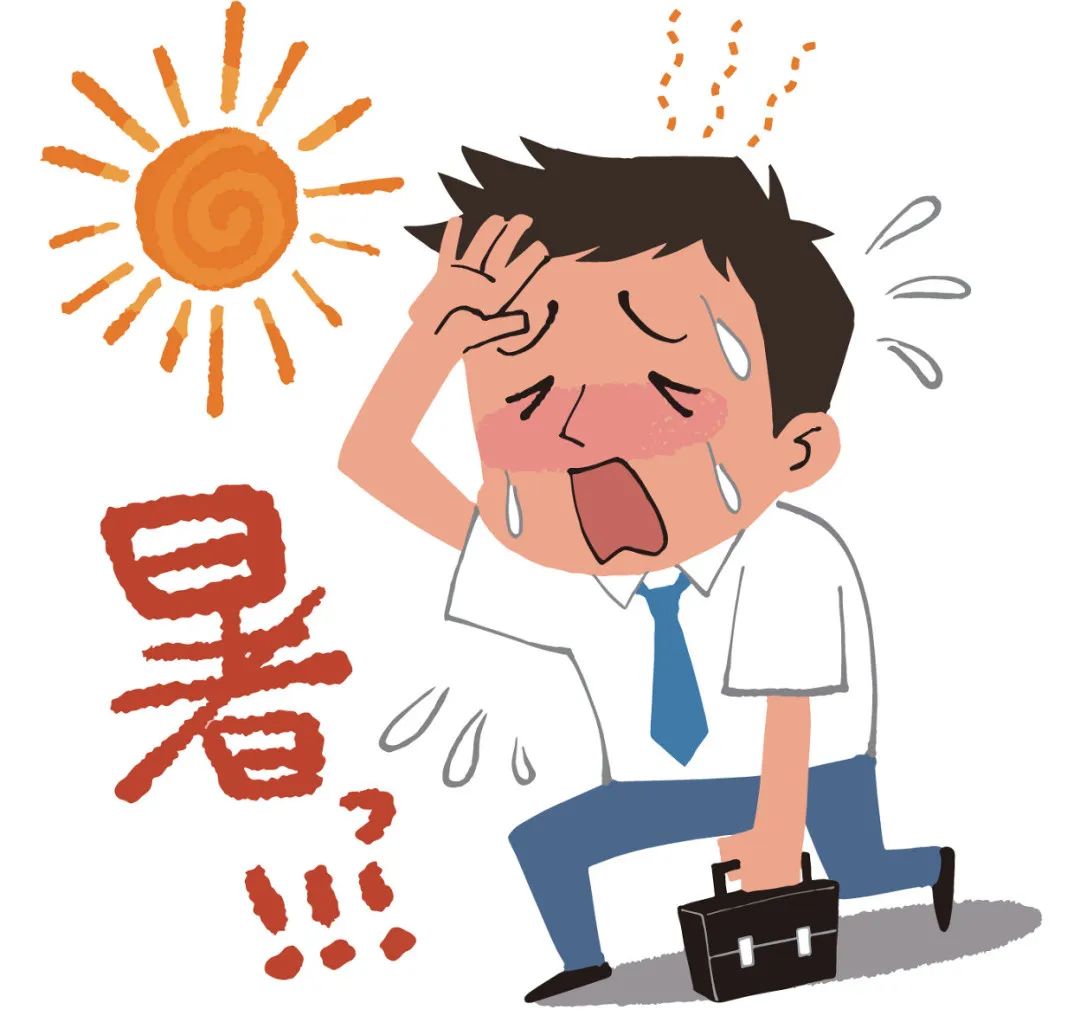 √ 热衰竭:常发生于儿童、老年人及慢性病患者。由于人体的水分及电解质丢失过多,导致血容量不足,进而引起头痛、头晕、胸闷、面色苍白、冷汗淋漓、脉搏细弱或缓慢、血压偏低等。