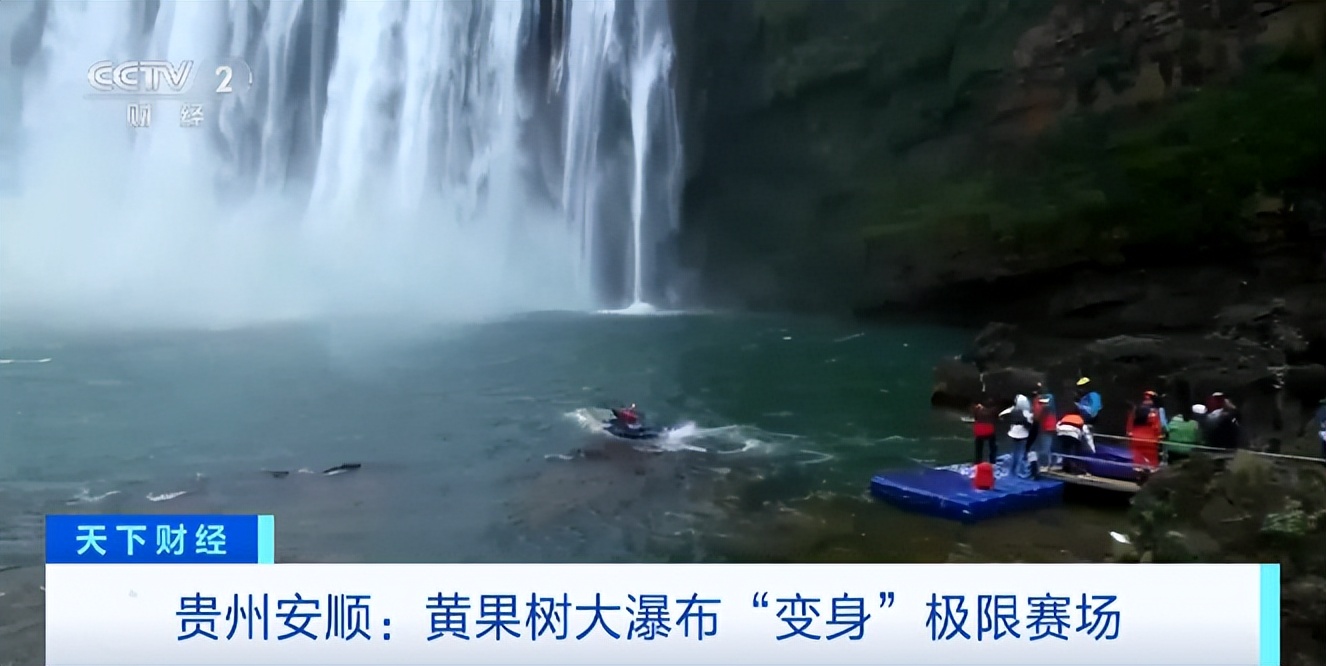 总台记者 尹平:极限赛赛场在世界著名的黄果树大瀑布举行,瀑布水声气势磅礴,在这样的自然胜景举办此国际赛事,可以说是先声夺人、别开生面。