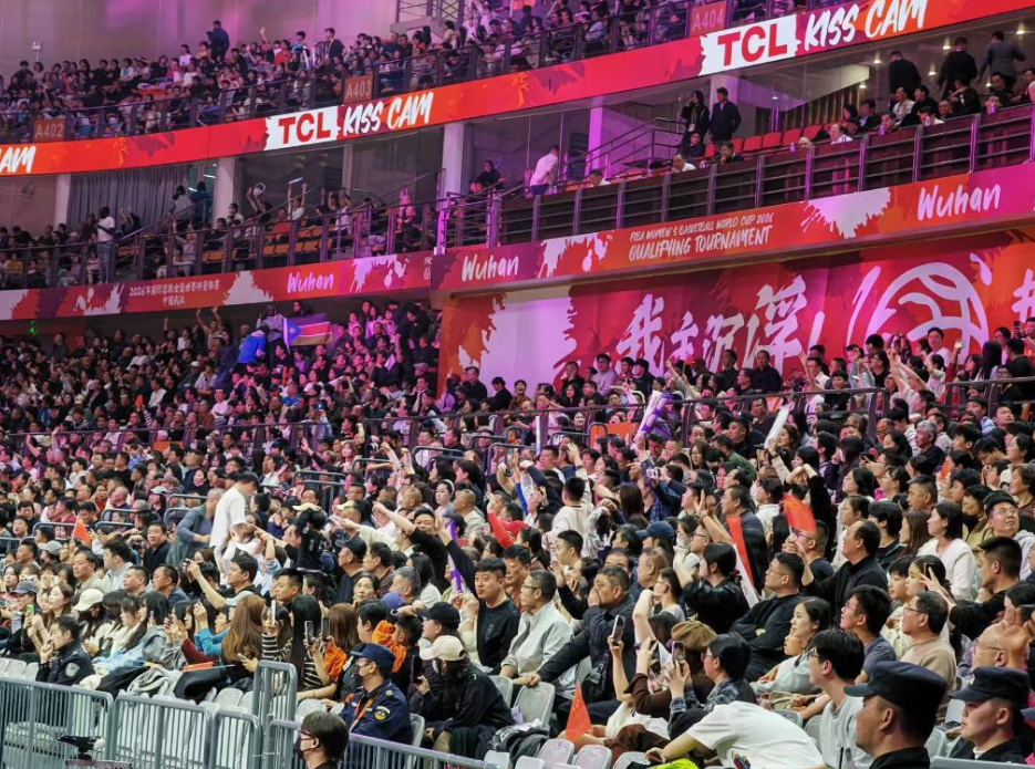 观众在武汉体育中心体育馆观看国际篮联女篮世界杯资格赛。新华社记者 乐文婉 摄