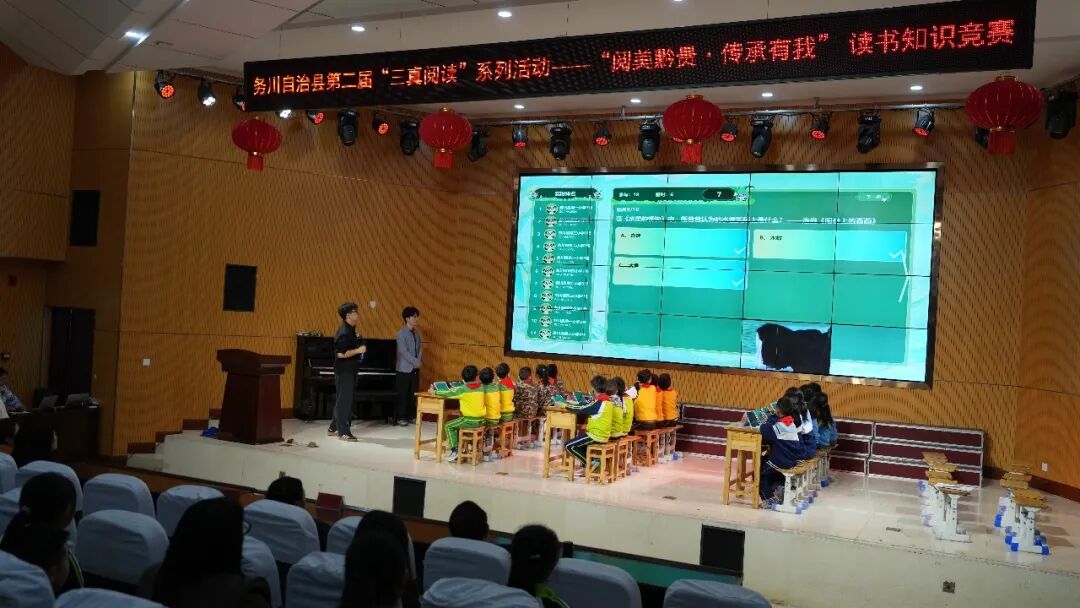 在务川自治县第五小学,“阅美黔贵·传承有我”读书知识竞赛同样紧张精彩。全县三至六年级学生代表队同台比拼,在必答、抢答、线索问答等环节沉着应战、默契协作。激烈角逐中夯实阅读积累,思维碰撞间传承黔贵文脉,充分展现新时代少年昂扬向上的精神风貌。
