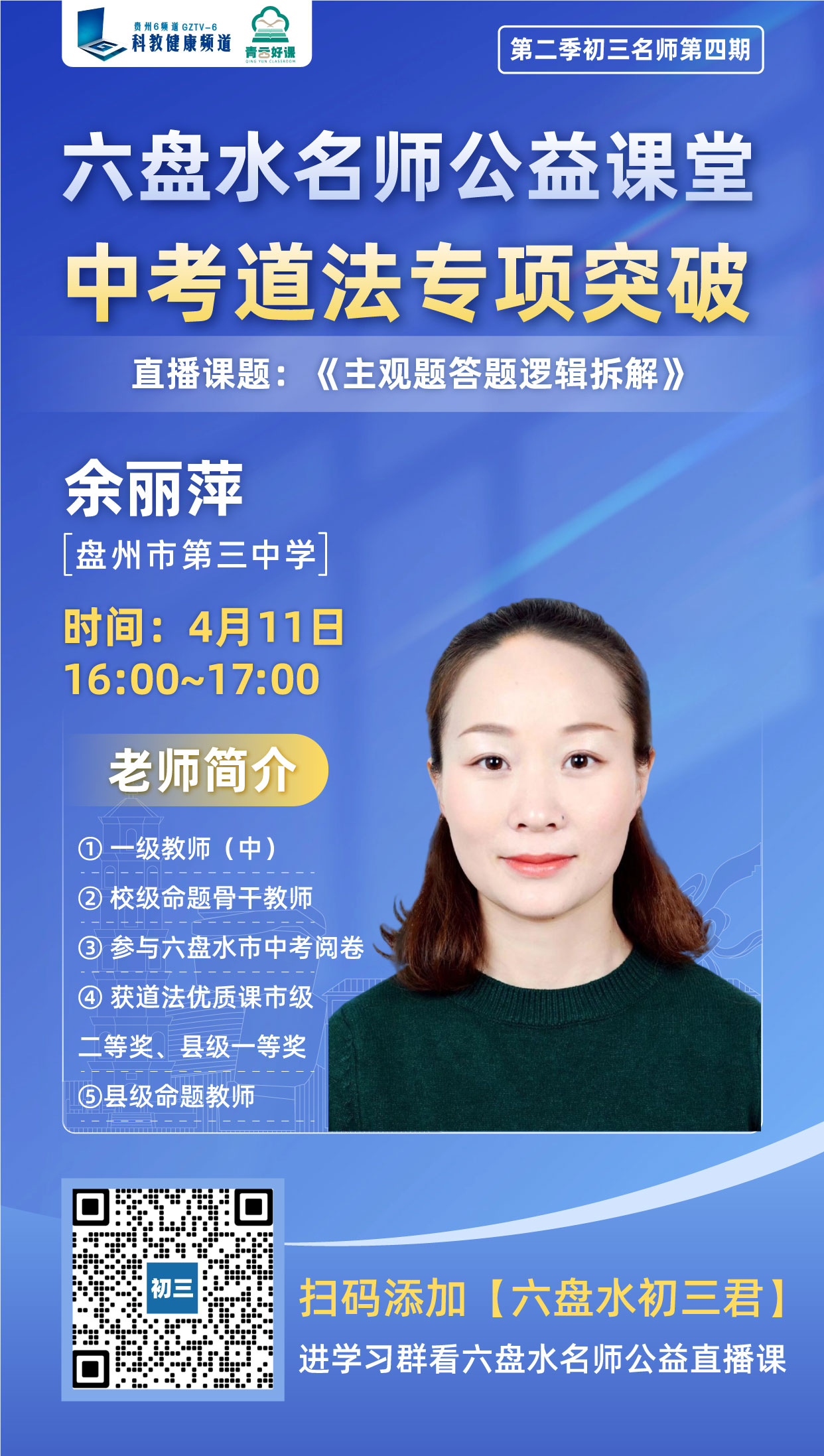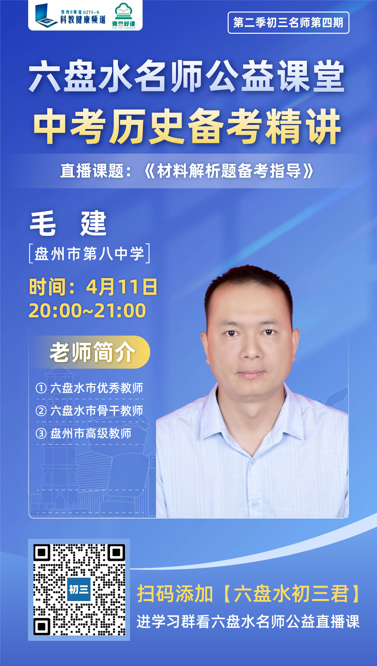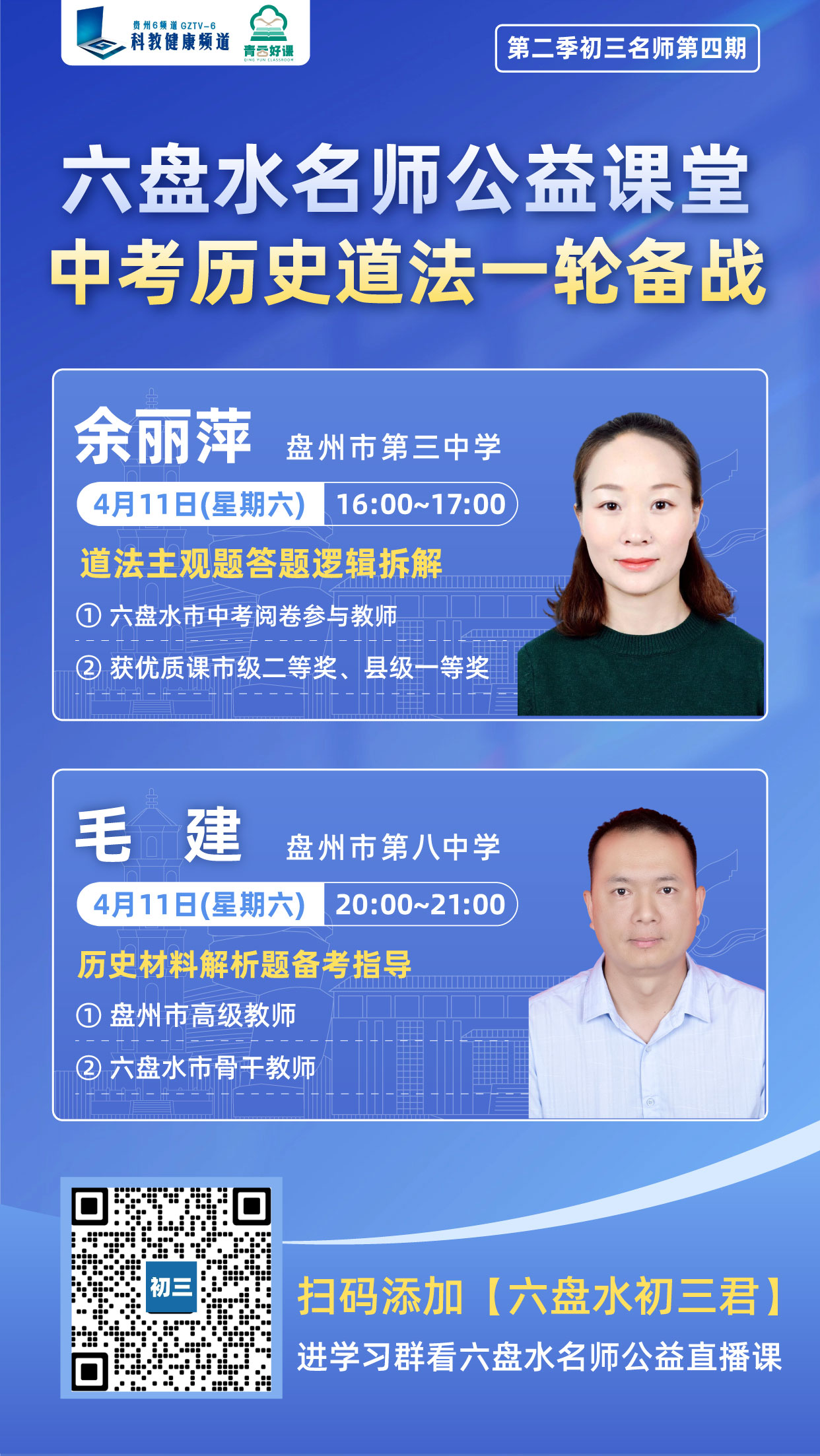 为深入贯彻落实教育惠民政策,切实解决学子备考中的实际困惑,由贵州广播电视台教育事业部与盘州市教育局联合主办、盘州市各初级中学深度参与的《青云好课・盘州名师公益直播课堂》(第二季)第四期将于本周六(4月11日)下午16:00—17:00;20:00—21:00正式开播。这是专为初三学子定制的全免费、高含金量中考冲刺公益课,贵州广播电视台以 “青云” 为名,打造名师公益直播课。依托全省顶尖名师资源,把优质课堂搬上 “云端”,跨越山川惠及更多学子。以名师引路、课程为阶,助学子拾级而上,触摸属于自己的“青云之志”。“青云好课”愿做托举之风,助力每个孩子的梦想都如“青云”般“云程发轫,万里可期”。