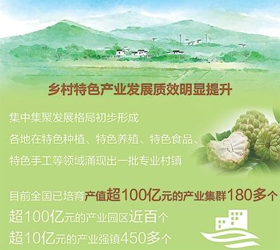 乡村特色产业提档升级,延链增效是必由之路。特色种植、特色养殖、特色食品、特色手工……通过有序开发乡村特色资源,一批产业链带动作用强的专业村镇涌现出来,目前全国已培育产值超100亿元的产业集群180多个,超100亿元的产业园区近百个,超10亿元的产业强镇450多个,乡村特色产业发展步入快车道。在四川省安岳县,一颗柠檬串起一条产业链,跳出传统的种植思维,开发出果汁、果酒等数十种精深加工产品,依托柠檬等特色农业资源,打造农文旅融合旅游景区,变“卖产品”为“卖风景”。强龙头、补链条、兴业态、树品牌,推动农村一二三产业深度融合,延长产业链、提升价值链、拓宽增收链,不断激活沉睡的乡村特色资源,推动乡村特色产业做优做强。