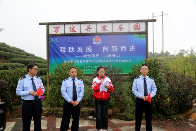 话与代表,税惠助信心。贵州丹寨小镇茶业有限公司财务经理杨娟表示:“今天非常高兴受邀参加第33个全国税收宣传月启动仪式,也要感谢税务部门一直以来对企业的支持与帮助。税务的自助办税终端、延时服务、上门辅导等便企措施,为企业提供了良好的办税环境,让我们能够放心投资、专心经营。同时,税务部门也积极落实减税降费政策,为企业减轻了负担,激发了市场活力。”丹寨扶贫茶园共有茶叶企业11户,每年带动数以千计的百姓参加采摘劳动,人均劳动收入提高到5000元以上。2023年以来,税务部门走访企业40多次,解决申报、发票等问题15个,助力企业累计享受涉农税惠减免30万元,为推动丹寨扶贫茶园高质量发展贡献了税务力量。