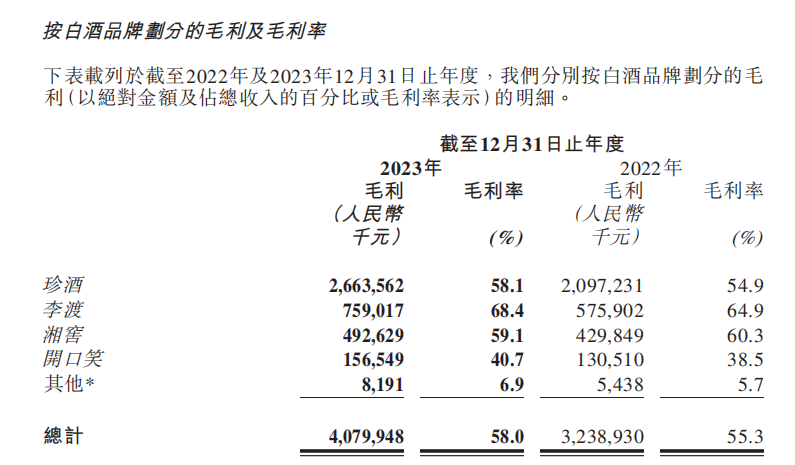 扩大次高端及以上产品组合优化是2023年珍酒李渡的关键举措。年报显示,其高端化效果显著,2023年珍酒李渡高端白酒产品的收入从1.43亿增长至1.91亿,同比增长33.2%,主要是由于珍酒高端产品和李渡高粱1308、湘窖·龙匠系列的收入增长。次高端增长15.3%,中端及以下产品增长16.3%。