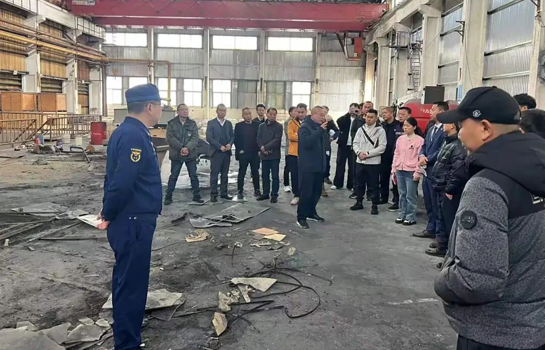 随后,全体参会人员实地查看了因违规动火作业引发火灾的事故现场。通过“沉浸式”观摩,现场复盘了火灾发生、蔓延的全过程以及灭火救援情况,让企业负责人直观感受违规操作带来的严重后果和巨大危害。期间,消防监督员还现场讲解了火灾初起阶段的应急处置措施,包括灭火器的正确使用方法、组织人员疏散逃生的关键要点等,有效提升了参会人员的自防自救和应急处置能力。