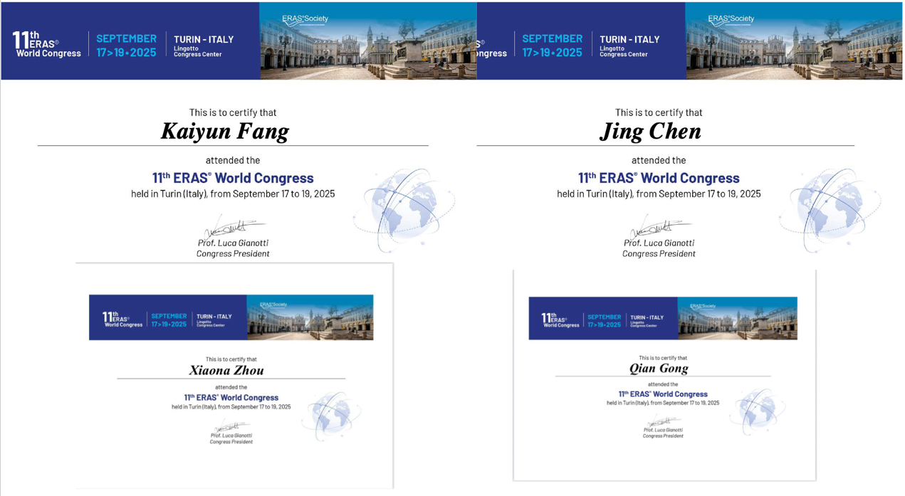 2025年9月17日至19日,第十一届国际加速康复外科(ERAS®)大会在意大利都灵Lingotto会议中心隆重召开。作为全球ERAS领域最具权威性与影响力的学术盛会,本次大会吸引了来自全球100余个国家和地区的数百名外科、麻醉、护理、营养、康复医学等多领域专家学者齐聚一堂。