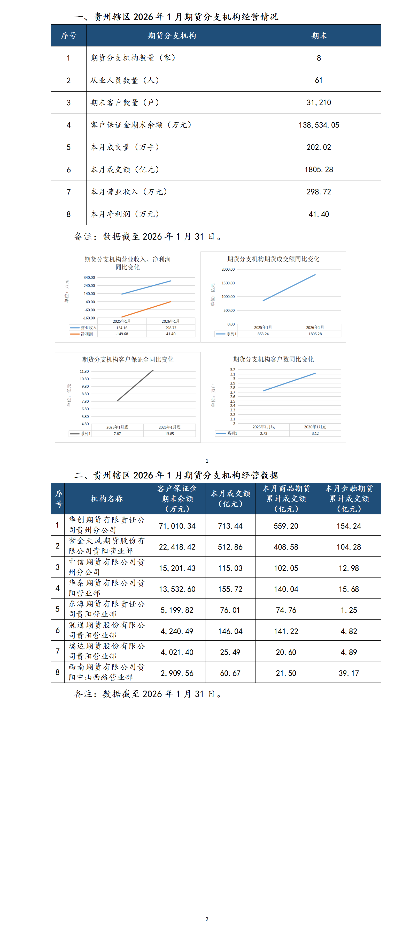 黔证资讯丨贵州资本市场月报:期货经营机构经营情况统计信息(2026年1月)