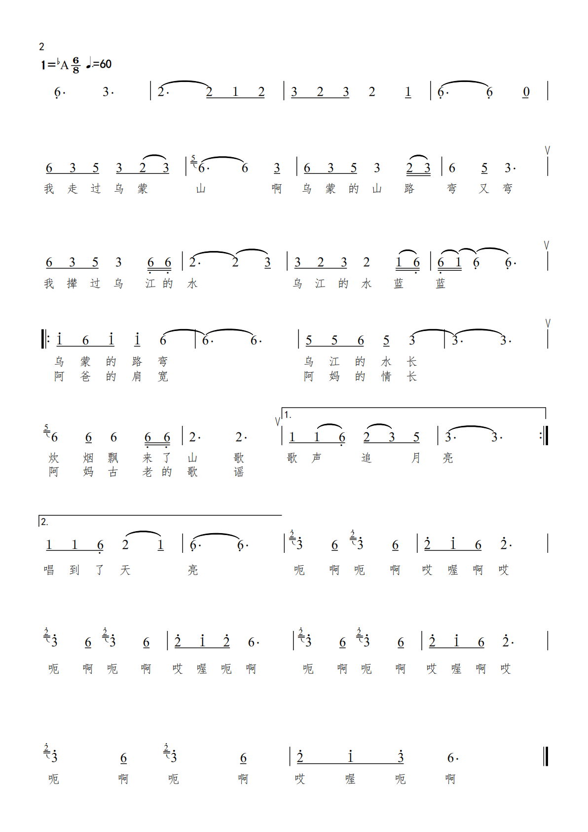 旋律根据黔西北一带彝族酒歌元素发展而来,花腔女高音独唱,管弦乐加人声伴唱,展现乌蒙儿女梦中的山水、古老的村寨、远嫁的女儿、牵挂的母亲等厚重的情怀。